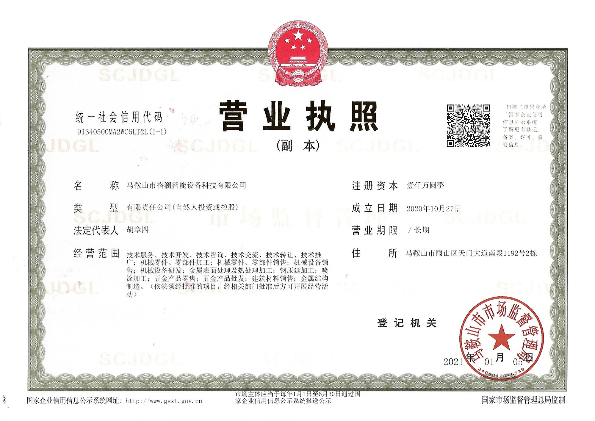 馬鞍山市格瀾智能設(shè)備科技有限公司位于皖江經(jīng)濟(jì)帶的鋼城馬鞍山市,公司距馬鞍山高速出口1公里。具有臨江近海,緊靠經(jīng)濟(jì)發(fā)達(dá)的長(zhǎng)江三角洲的地理位置。 公司秉持長(zhǎng)三角一體...